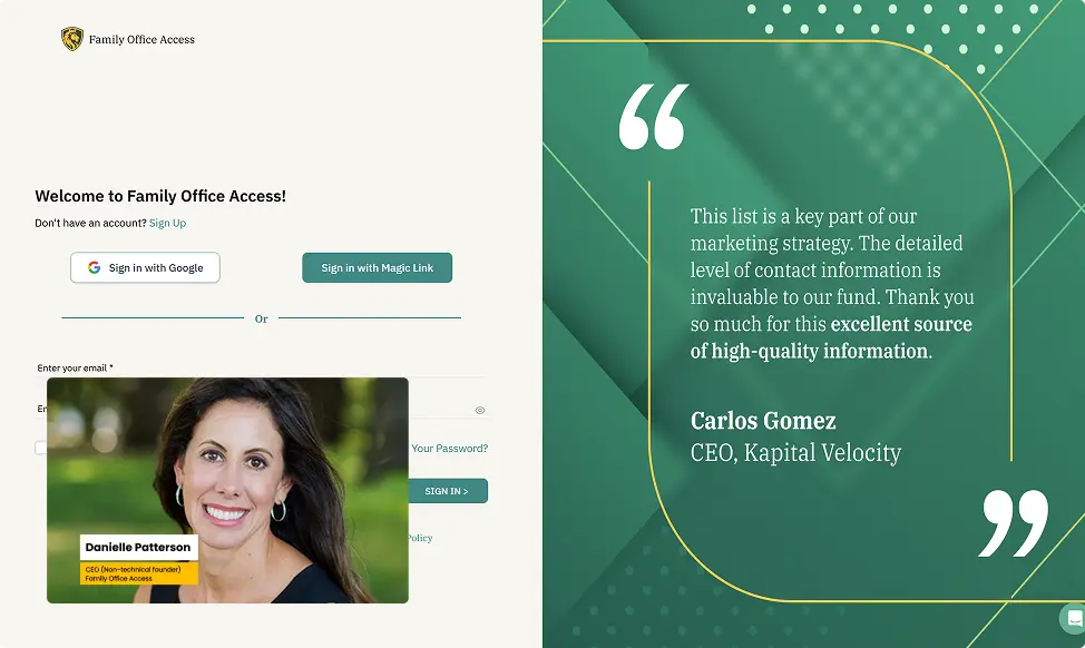 Family Office Access is a platform that connects founders and startups with family office investors. But after a series of failed development relationships, they turned to GreyCyan for help—and everything changed.